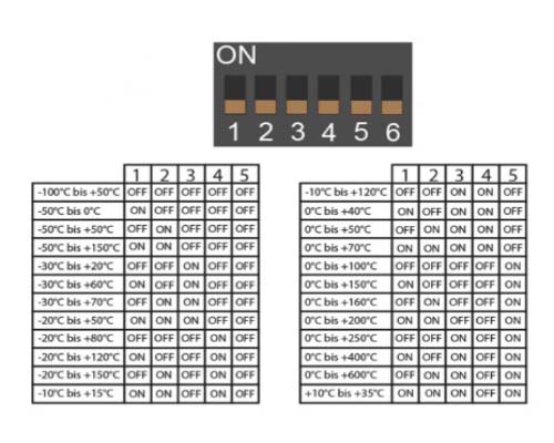 Mittels DIP-Schalter können 24 unterschiedliche Messbereiche eingestelt werden, wobei weitere Messbereich auf Anfrage erhältlich sind.